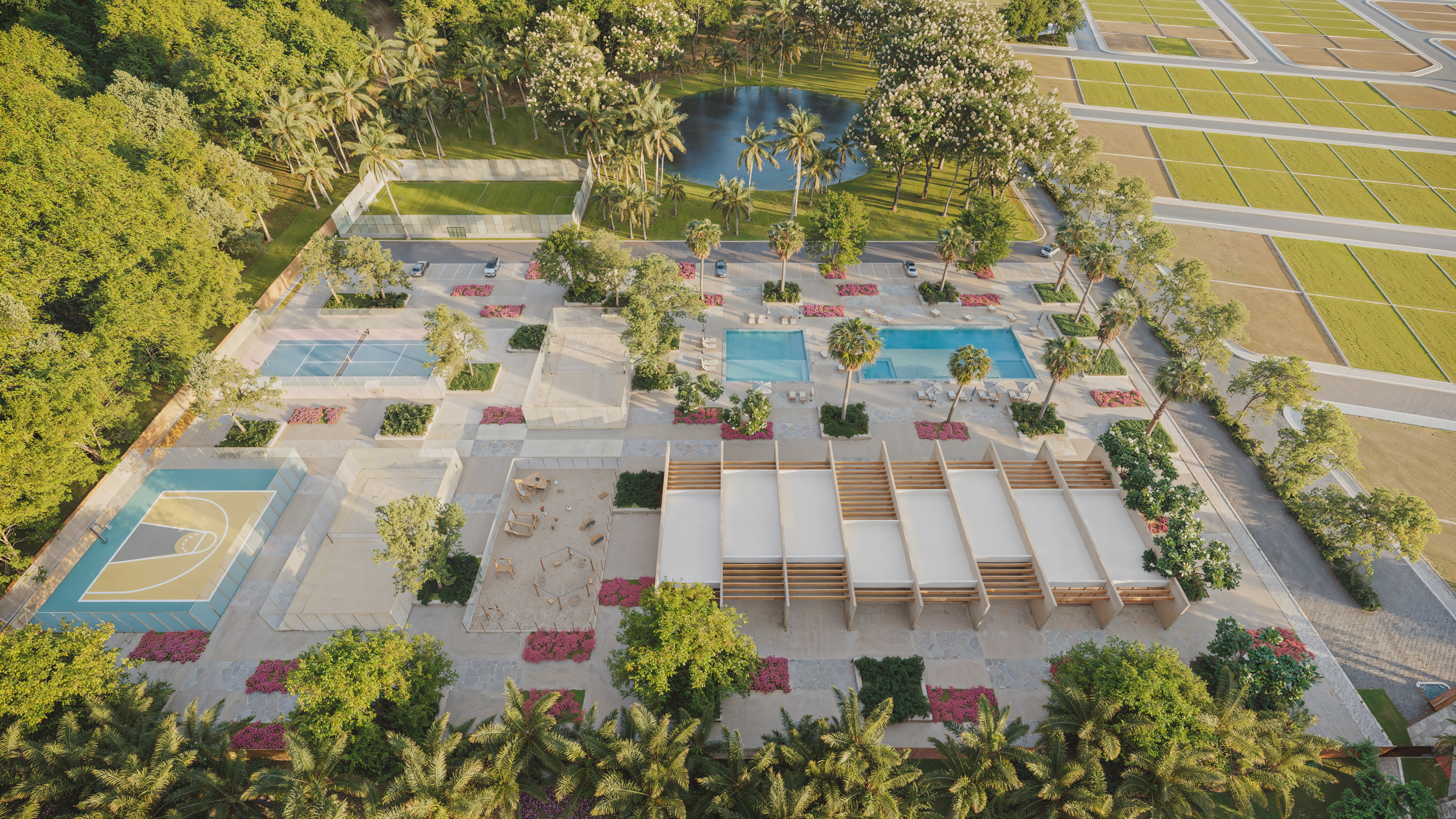 Com 10.000m² de área de lazer, o Beach Club é o coração do condomínio, oferecendo uma estrutura digna de resort: piscinas com 400m² de lâmina d’água, spa, academia, salão de festas, espaços gourmet, além de quadras de tênis, beach tennis, campo de futebol e parques infantis.